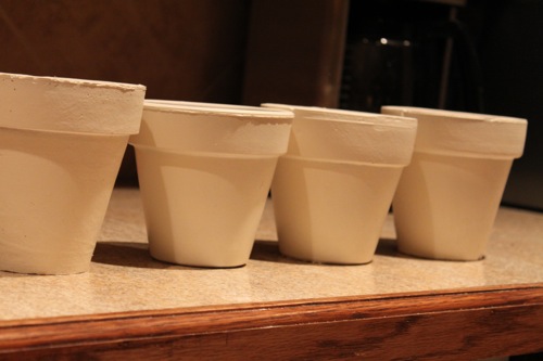 Then put some styrofoam balls in each pot and stuck in some faux greenery.